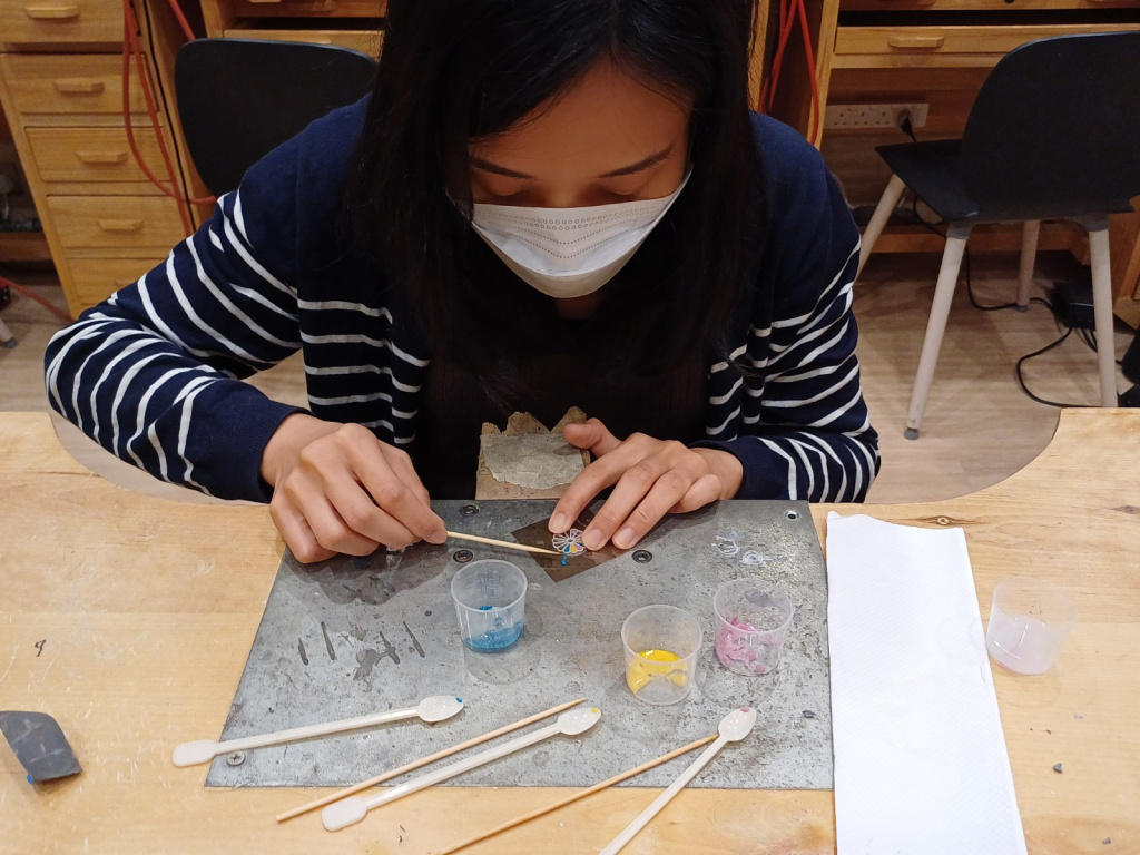 空窗琺瑯吊墜工作坊已於11月14日順利舉行,由專業導師 Carmen So 親自指導。學員在課堂上先學習銀件打磨技巧,隨後掌握空窗琺瑯的製作要訣。透過高溫燒製,琺瑯呈現出通透亮麗的色彩質感。