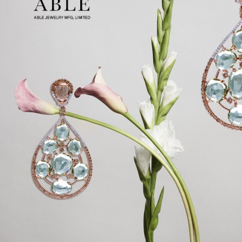 Rose gold with diamond, brown diamond and green amethyst earrings