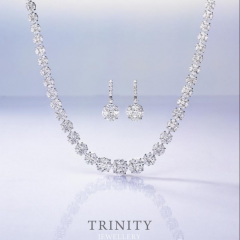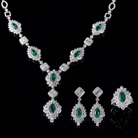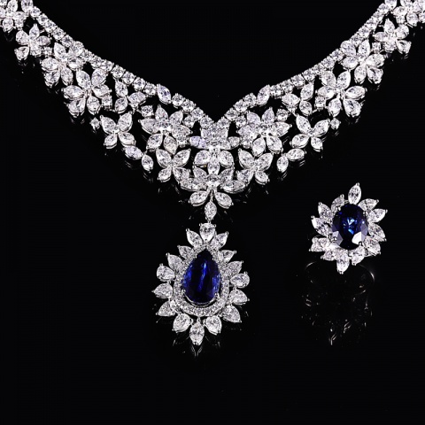 18K WHITE GOLD DIAMOND SAPPHIRE SET