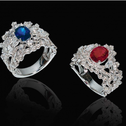 18K WHITE GOLD DIAMOND SAPPHIRE RING