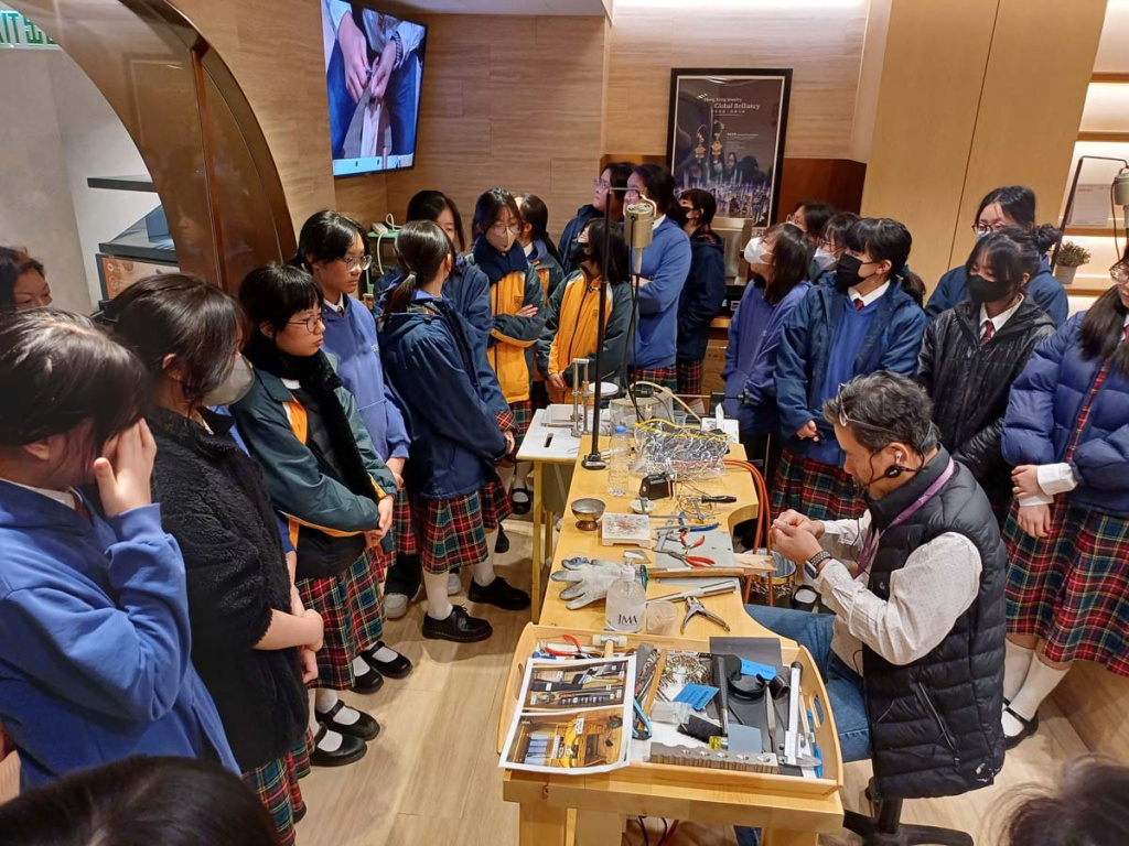 德兰中学于2024年1月26日到访参观香港珠宝工坊(J-HUB)。是次活动有幸邀请到香港大溪地黑珍珠协会总经理黄素珠女仕作分享嘉宾及权兴珠宝公司创办人罗沛权先生作金工示范导师。当日罗生详细讲解珠宝制作过程,让学生了解珠宝制作之工艺及范畴。而同场另一嘉宾黄女仕亦分享制作珠宝重要材料之一,珍珠的相关知识,还带来样本及礼物,在问答环节中送给同学。随后,同学更有机会尝试金工工艺,在匙扣上刻字,体验当中乐趣。整个活动在欢乐气氛中完满结束。