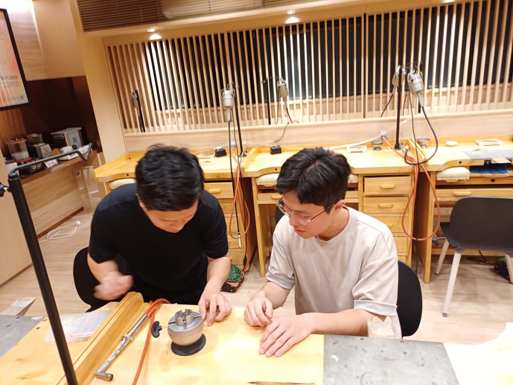 J-HUB珠寶鑲石入門班已於11月11日順利舉行。在專業導師Frank Leung的指導下,學員不僅掌握了包鑲的知識與技巧,更親身實踐了從調整戒圍、打磨到鑲嵌的完整工序,成功打造出專屬自己的海藍寶銀戒指。