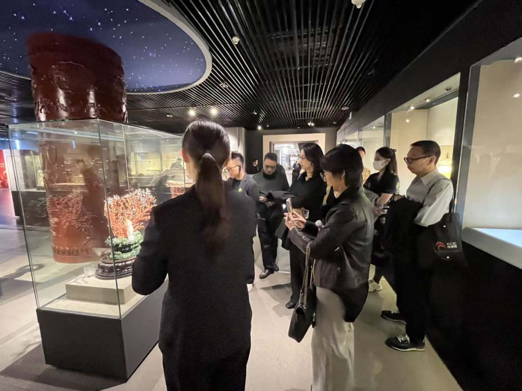 李肇唐主席團一行在15日下午繼續參觀“北京工藝美術博物館”,並與北京工美集團董事長段體玉、北京工藝美術博物館館長郭紅蕾等集團領導交流座談。