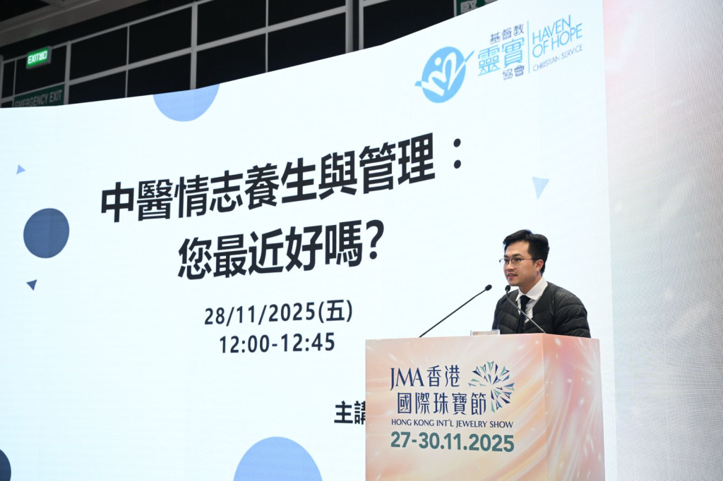 The sharing session "Traditional Chinese Medicine Emotional Wellness & Management" was delivered by Traditional Chinese Medicine practitioner Mr. Cheung Ka Ming from the Haven of Hope Christian Service. He shared how to nurture the body and mind through Traditional Chinese Medicine. Mr. Cheung explained the emotional and psychological needs of modern people in simple terms, approached emotional needs from a Traditional Chinese Medicine perspective, and introduced Traditional Chinese Medicine methods to alleviate negative emotions. Additionally, Haven of Hope offered on-site Traditional Chinese Medicine consultations, allowing the audience to benefit greatly and experience Traditional Chinese Medicine firsthand.