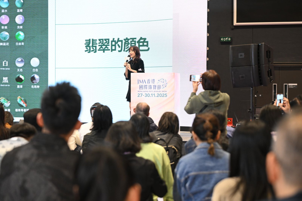 Renowned artist Ms. Anne Heung presented an engaging lecture on jade to the audience. She shared how jade culture has evolved into one of today's major jewelry design categories, transitioning from a collector's art piece to a popular accessory. Ms. Heung detailed information on designing jade jewelry and how to style it, providing the audience with valuable knowledge.