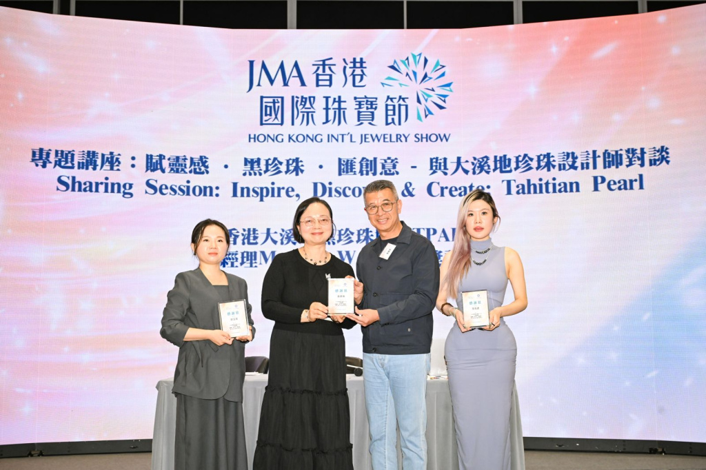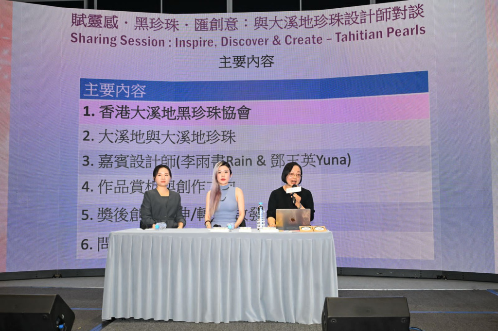 We were honored to host Ms. Wong So Chu, General Manager of the Hong Kong Tahitian Black Pearl Association, and two Tahitian Pearl Special Award designers—Ms. Tang Yuk Ying and Ms. Li Yu Shu—for this sharing session. Ms. Wong provided a detailed introduction to the characteristics, colors, and shapes of Tahitian black pearls. The two designers also shared, through live interviews, how they incorporated various styles of black pearls into their award-winning designs and discussed their creative processes. Ms. Wong also conducted a Q&A session, during which the audience actively participated and received exquisite souvenirs.