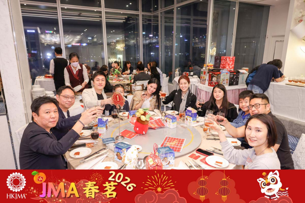 本年度的「JMA春茗2026」已於2月27日(星期五)晚,假尖沙咀「囍薈」圓滿舉行。當晚活動吸引接近300名參加者出席,場面熱鬧非凡。不少參加者攜同同事與家人一同到場,歡聚一堂,為春節增添了一份溫馨與喜悅。