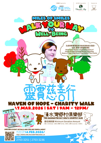 The Christian Spiritual Society will once again hold its Spiritual Charity Walk on March 7, 2026 (Saturday). The event will take place at the scenic Clearwater Bay Country Club. This charity walk will raise funds for non-governmentally funded projects such as the Sister Annie Skau Holistic Care Centre, making it a meaningful event. Participants will also receive a souvenir bag.