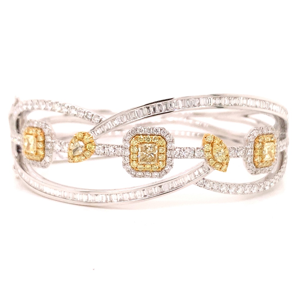 18K WHITE GOLD YELLOW DIAMOND AND WHITE DIAMOND BANGLE