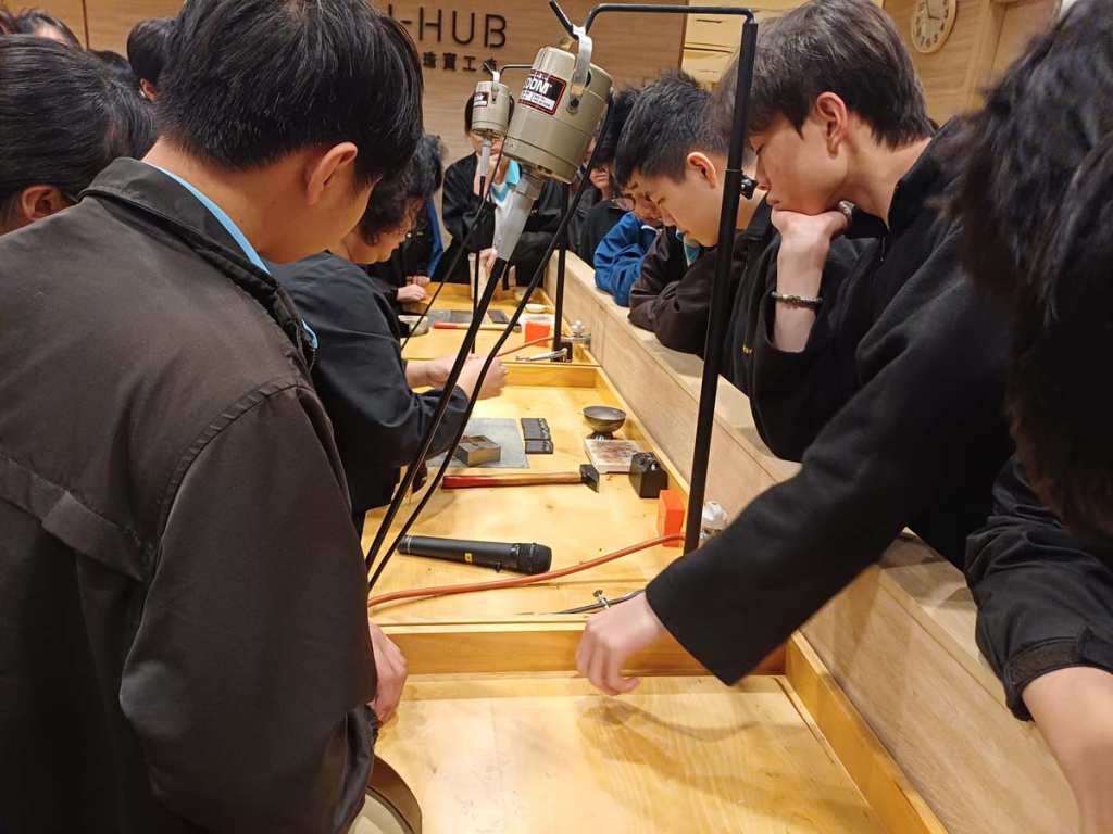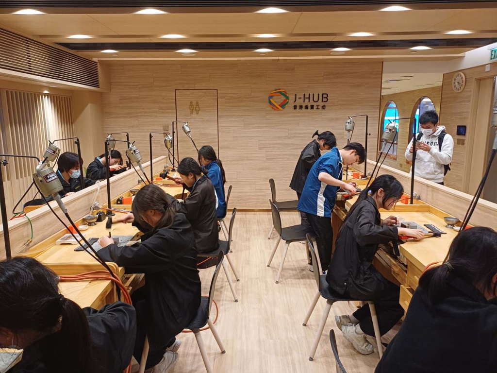 佛教大光慈航中学师生于3月4日到访香港珠宝工坊(J-HUB)参与生涯规划活动。当日邀请珠宝鑑定师Lavina Lau分享其入行经历及行业发展概况,让学生了解珠宝鑑定的专业范畴与职涯路向。随后,学生在工艺室亲手刻制姓名铜牌,体验金工创作的乐趣。透过互动交流,同学加深对珠宝行业的认识,为未来升学及职业规划拓展更多可能性。