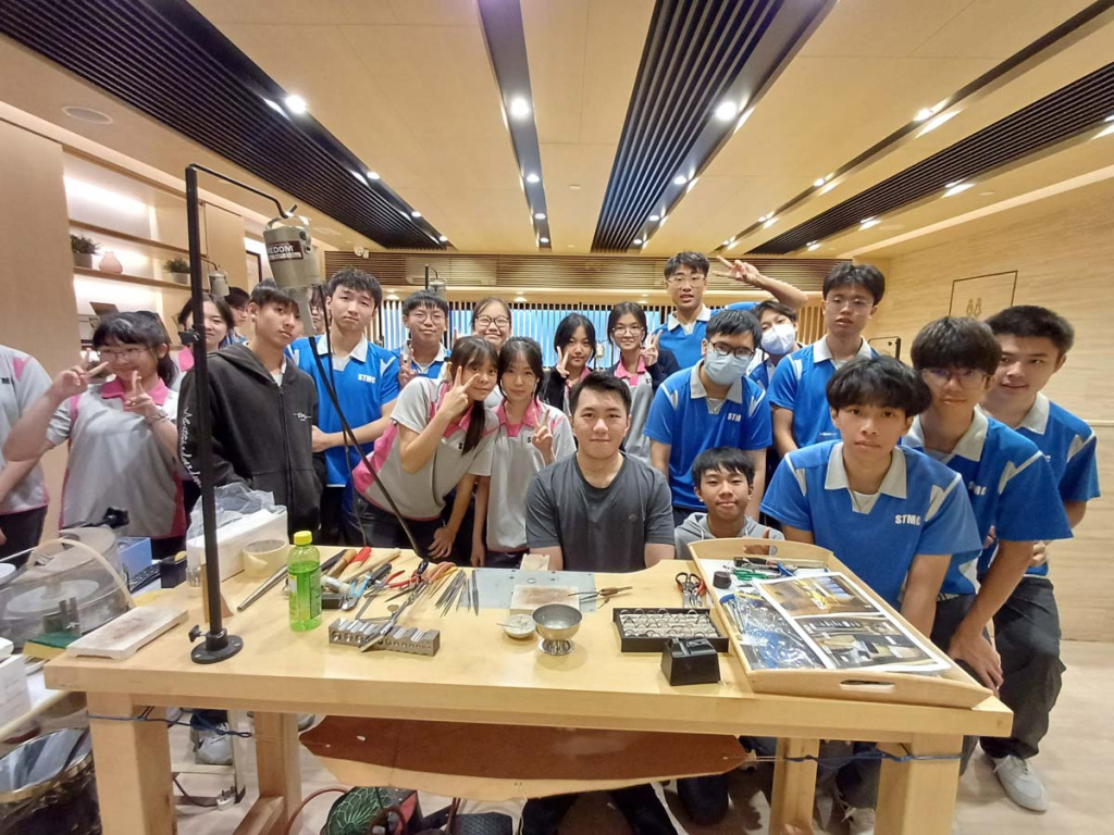 沙田循道衞理中學於9月26日到訪香港珠寶工坊,活動邀請資深珠寶設計師Kimberly Kwok分享入行心得與行業趨勢,助學生掌握珠寶設計領域的發展動向,為未來職涯規劃拓展視野。此外,權興珠寶Joseph Law現場示範金工製作,完整呈現銀戒指由金屬切割、退火軟化、精密焊接,到挫修塑形、多重打磨與拋光的完整工序,讓學生近距離體會傳統珠寶工藝的精髓。為讓學生親身體驗金工技藝,香港珠寶工坊特別準備專屬銅牌,讓同學們親手刻上名字,打造獨一無二的紀念作品。